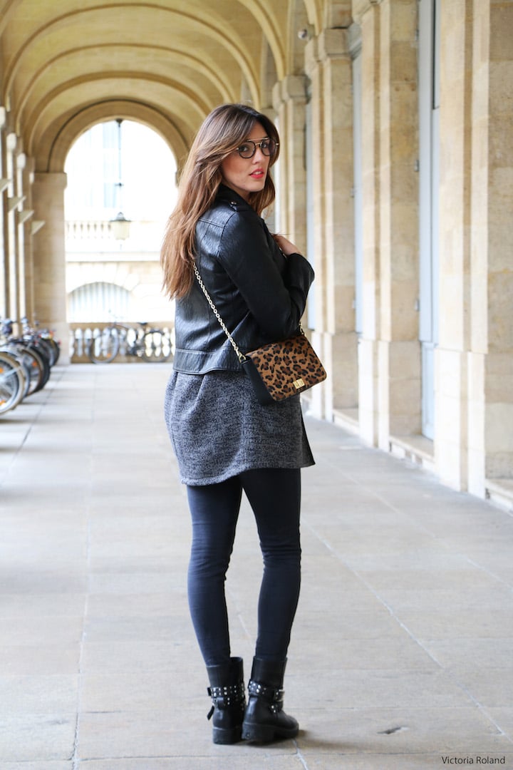 Layering perfecto gilet sac léopard