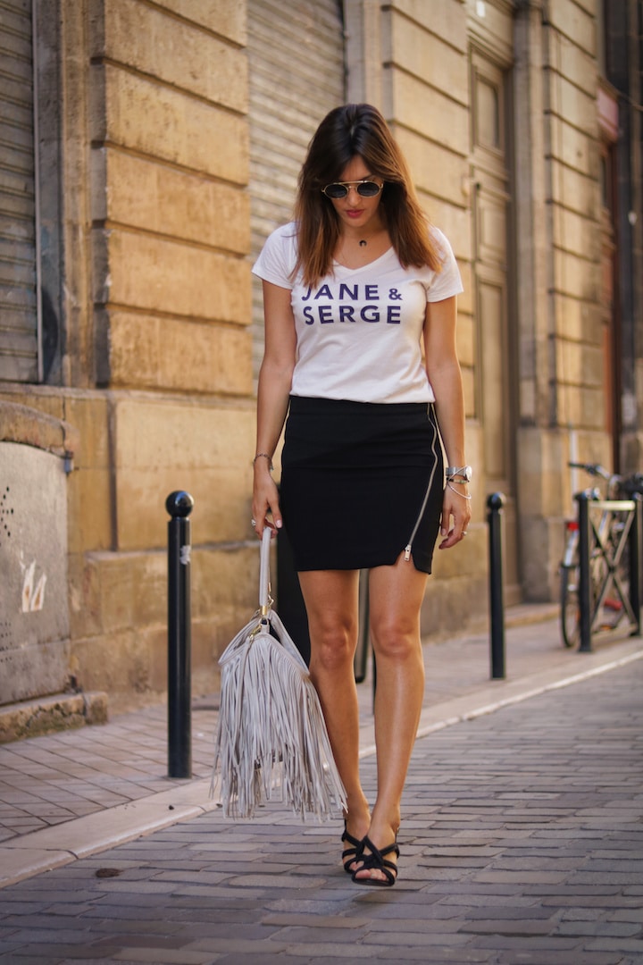 Jupe bi-matière IKKS et t-shirt Raoul et Marcelle