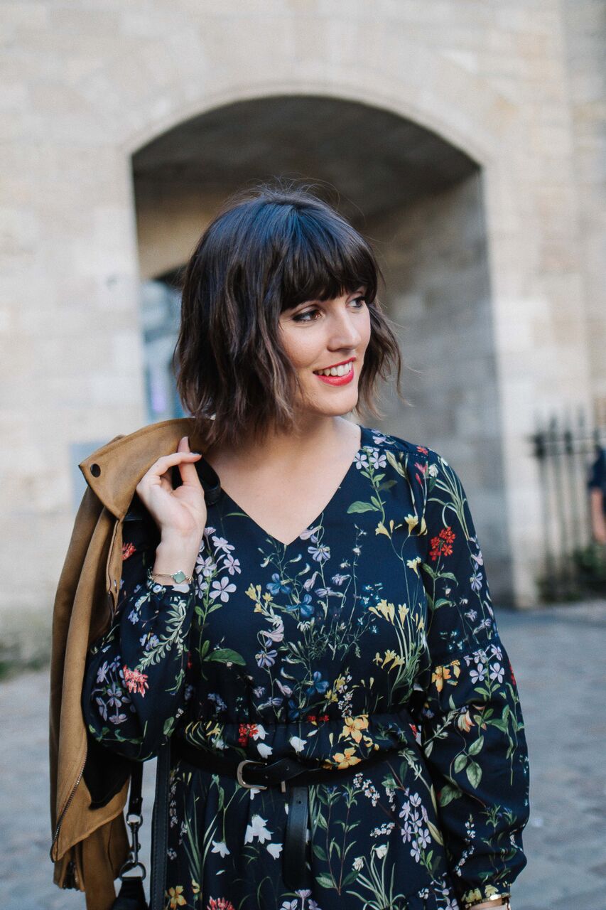 Robe longue à fleurs Camaïeu et Perfecto beige